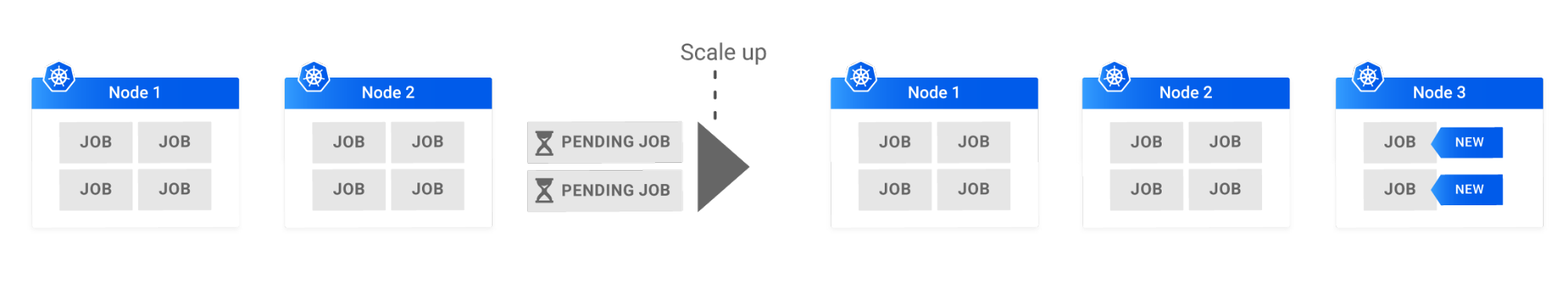 - Schedule pods that failed to run on the current nodes due to insufficient resources.